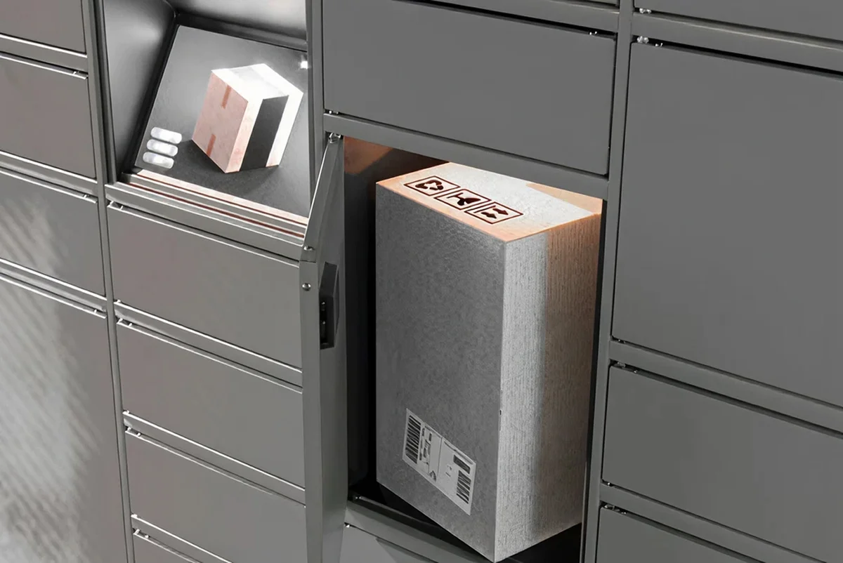 Die Paketstation steht den Bewohnern rund um die Uhr zur Verfügung und ist mit dem BUS-System verknüpft, um direkt über den jeweiligen Status zu informieren.