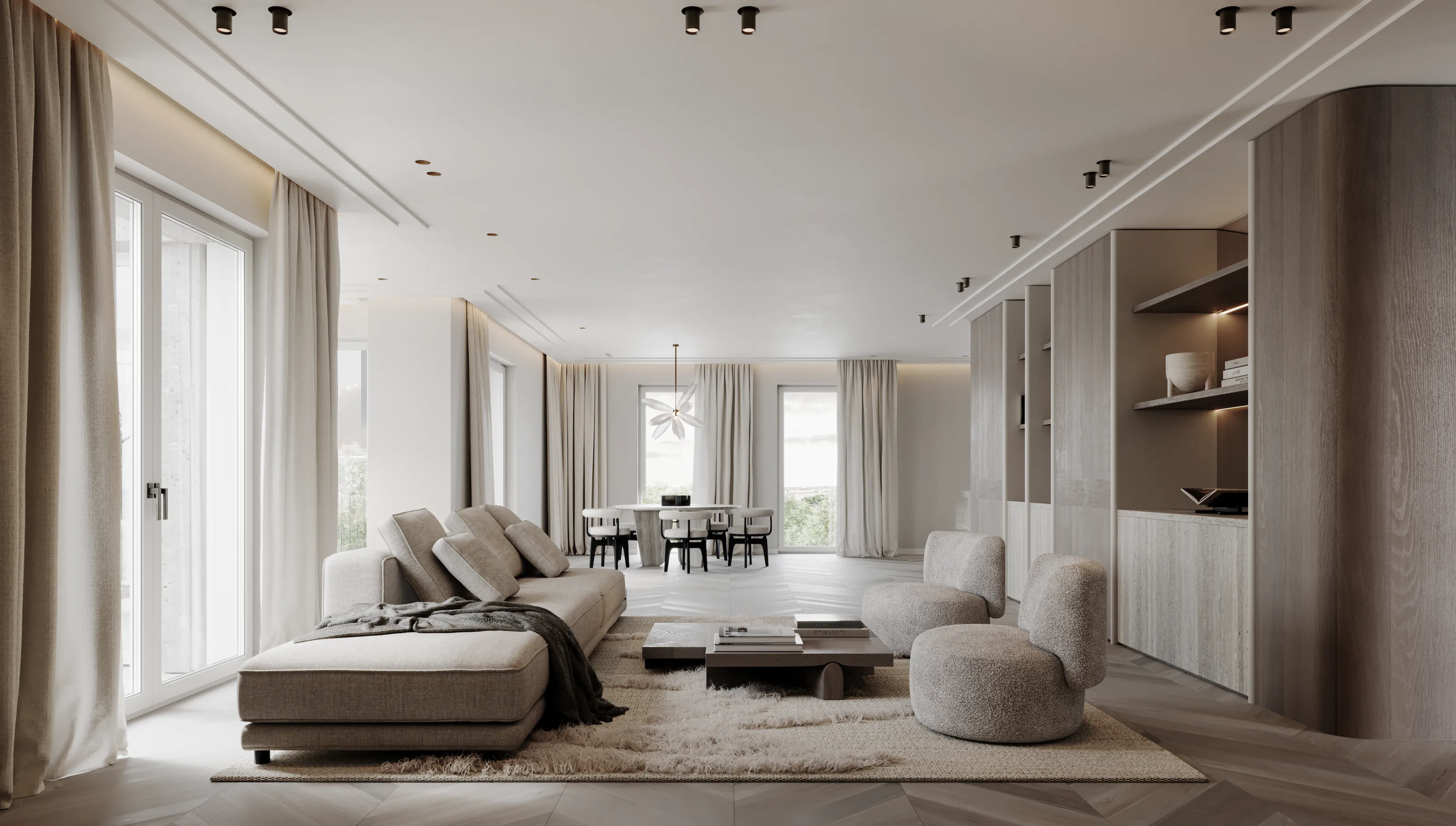 Für Menschen mit einem ausgeprägten Sinn für Raum, Intimität und Individualität eröffnet MAAX eine besondere Möglichkeit: Auf Wunsch lässt sich das Penthouse mit ausgewählten Wohnungen im ersten Obergeschoss zu einem einzigartigen Wohn-ensemble vereinen. Bereits konzipierte Varianten – Majestic und Masterpiece – präsentieren zwei visionäre Wege, wie Wohnen zur Kunstform wird.